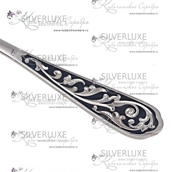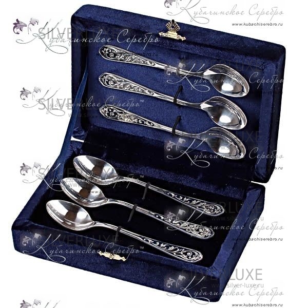 Серебро 925 пробы. От кубачинских ювелиров в фирменном исполнении. Говорят, когда начинаешь пользоваться ложками из серебра, пользоваться ложками из обычного металла пропадает всякое желание.