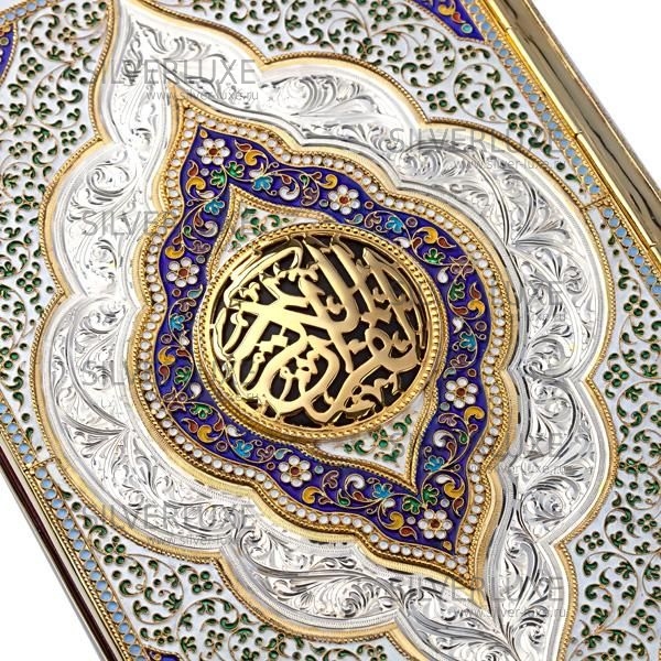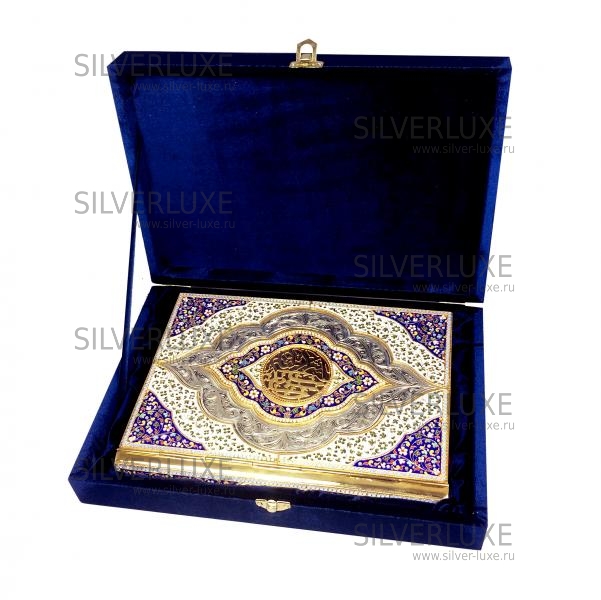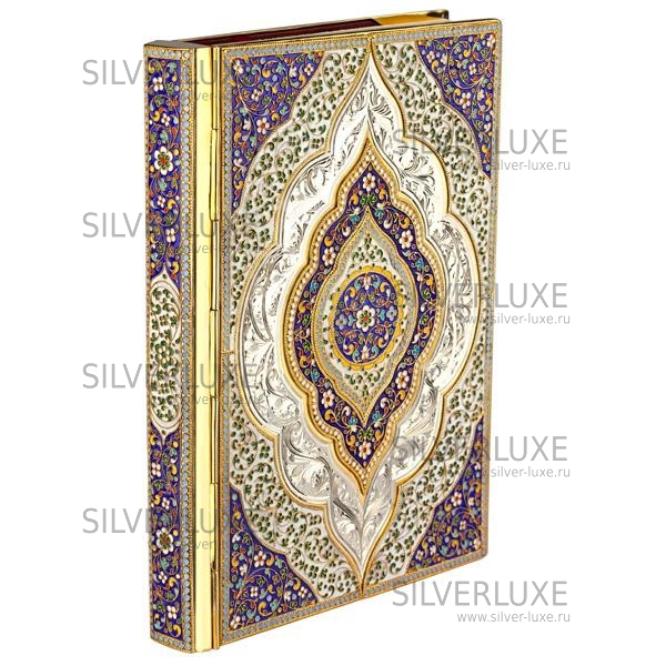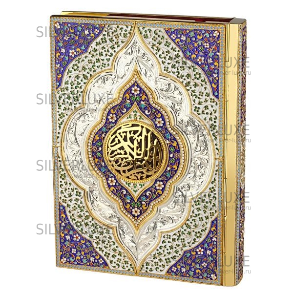 Серебро 875 пробы, с позолотой 999 пробы. Коран — священная книга мусульман. Слово «Коран» происходит от арабского «чтение вслух», «назидание». Коран представляет собой сборник изречений пророка Мухаммеда, сделанных им от имени Аллаха. Такой подарок станет достойным выражением уважения.