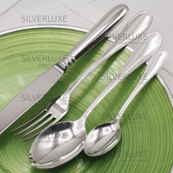 Серебро 925 пробы. Фирменный столовый набор. В набор входит: столовые ложки 6 шт., чайные ложки 6 шт., столовые вилки 6 шт., столовые ножи 6 шт., рыбные ножи 6 шт., рыбные вилки 6 шт., ложки для мороженного 6 шт,, вилки для торта 6 шт., совок для сахара 1 шт., рыбная сервировочная вилка 1 шт., нож для торта 1 шт., рыбный сервировочный нож 1 шт., лопатка для торта 1 шт., половник 1 шт., нож для масла 1 шт., щипцы 1 шт., вилка овощная 1 шт., ложка овощная 1 шт. Длина столовой ложки 20,5 см; чайной ложки 13 см; столовой вилки 20 см; столового ножа 25 см; рыбного ножа 20,5 см; рыбной вилки 17 см; ложек для мороженного 13 см; вилок для торта 13 см; совка для сахара 11,5 см; щипцов 14 см; половника 31 см; рыбной сервирвочной вилки 25 см; ножа для торта 27 см; лопатки для торта 26 см; рыбного сервировочного ножа 27 см; ножа для масла 17 см; вилки овощной 25 см; ложки овощной 25 см. Гарантия высшего качества от фирменного магазина!