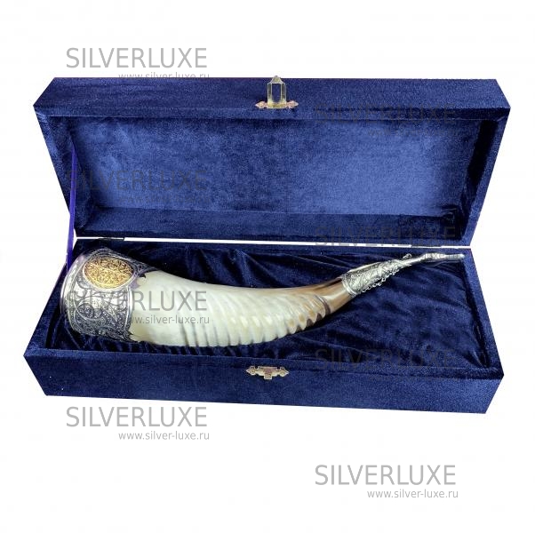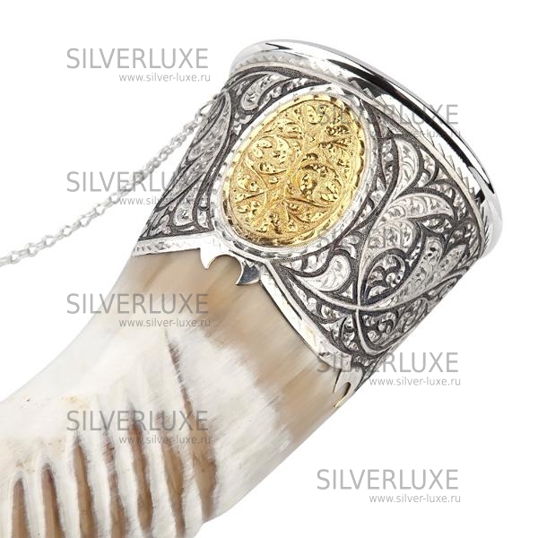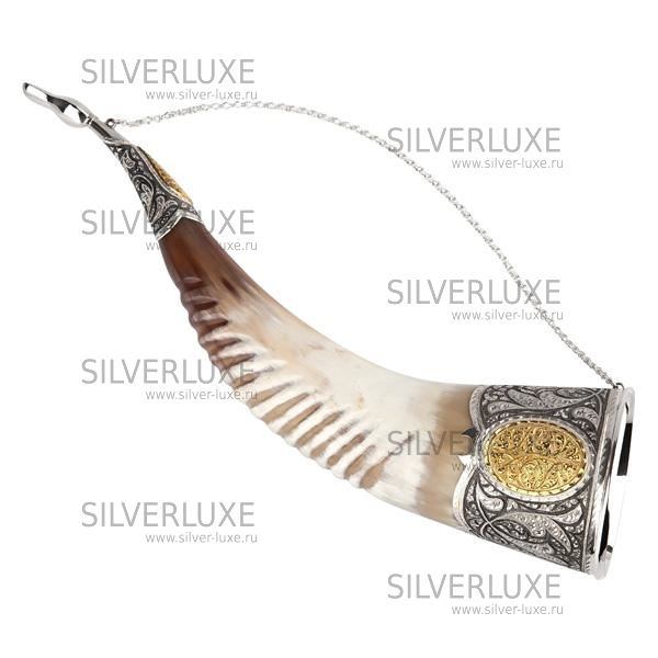 Серебро 875 пробы. Покрыт золотом 999 пробы. Рог с питьевой чашей.