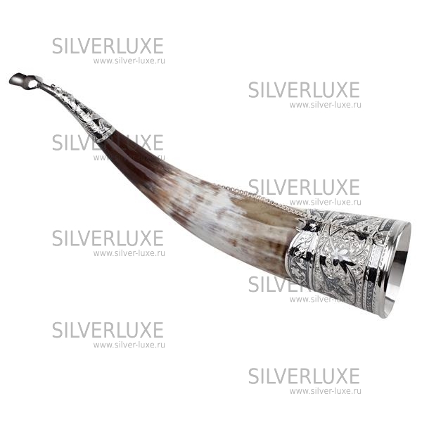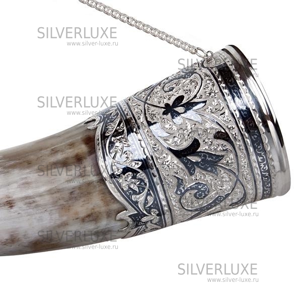 Серебро 875 пробы.Рог быка инкрустирован серебром.
