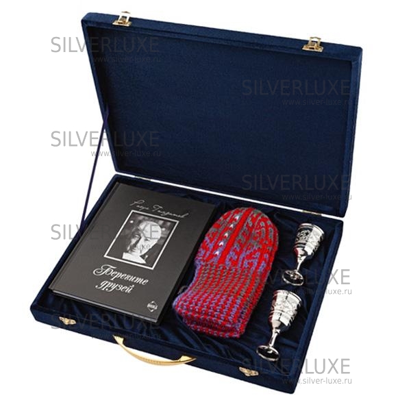 Серебро 875 пробы. В набоор входят: фляга и 2 стопки.