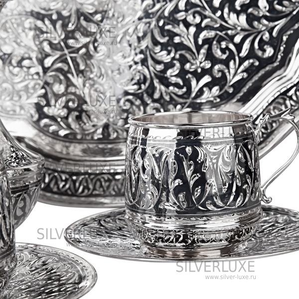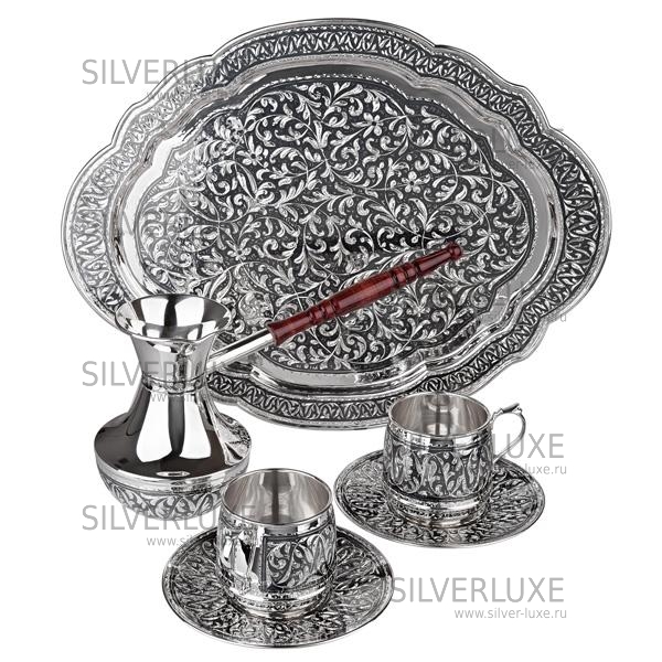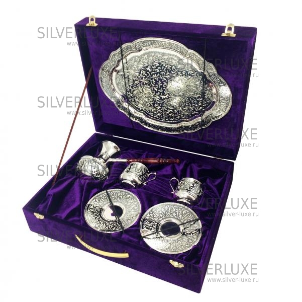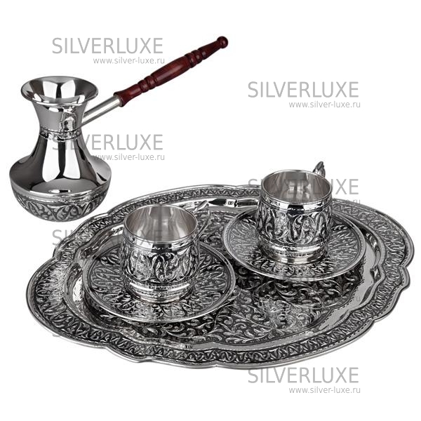 Серебро 875 пробы. Кофейный набор на 2 персоны, полностью ручная работа! В набор входят: поднос, турка и 2 кофейные пары.