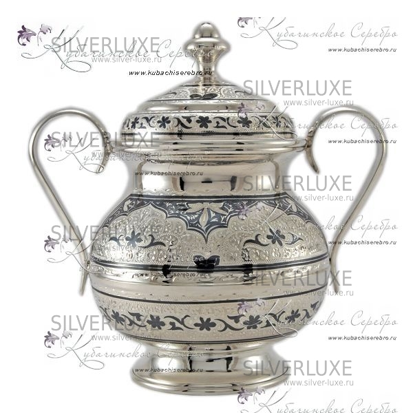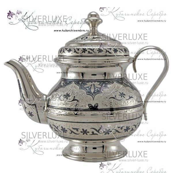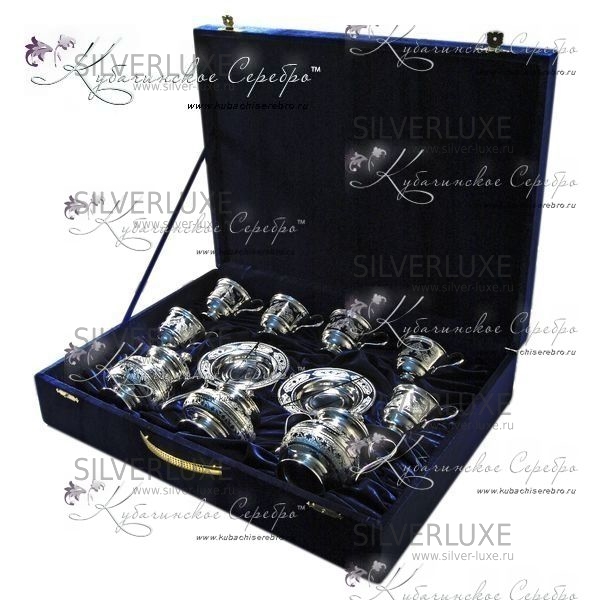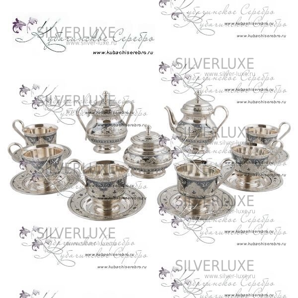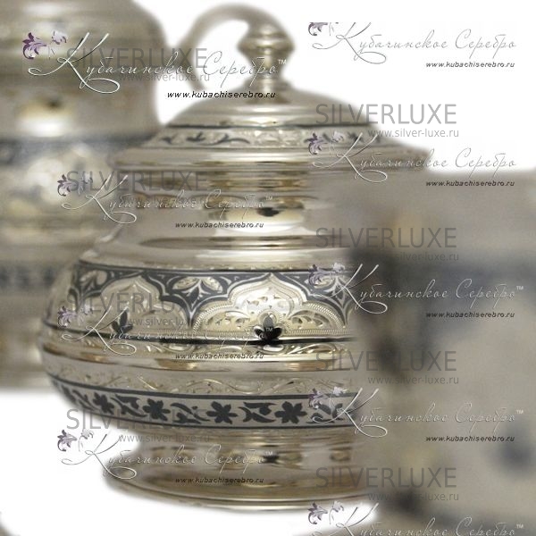 Серебряный набор 875 пробы. В набор входит чайник, сахарница,вареньица и 6 чайных пар.