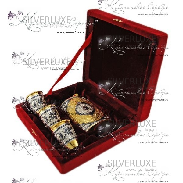 Серебряный набор 875 пробы . С позолотой 999 пробы. Объем фляжки 250 мл.