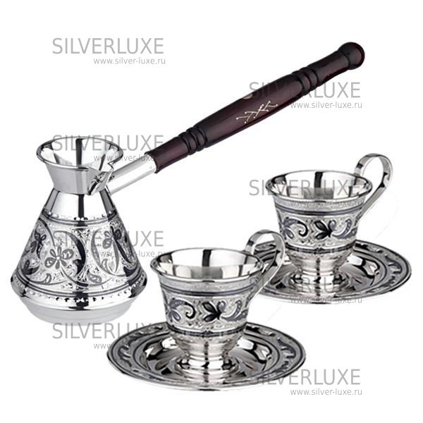 Серебро 875 пробы. В набор входят: поднос и три рюмки. В люксовом исполнении от кубачинских мастеров!