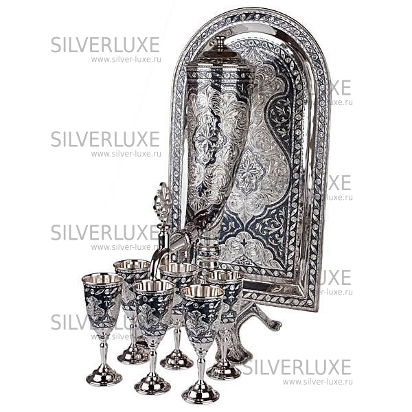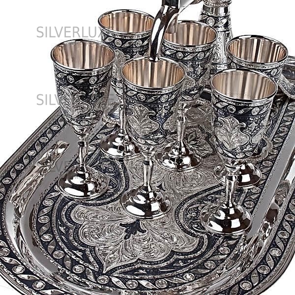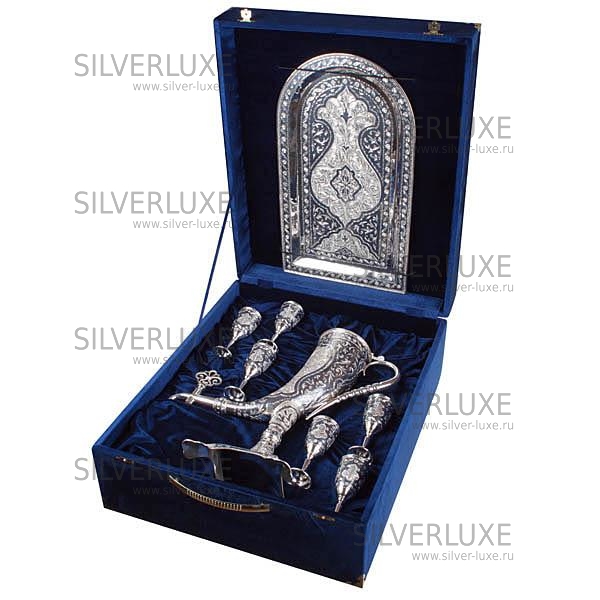 Серебро 875 пробы. Великолепный винный сервиз ручной работы Кубачинских мастеров!