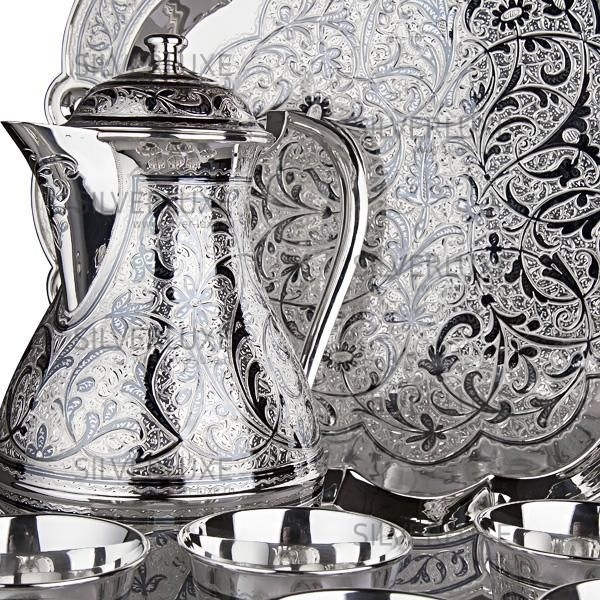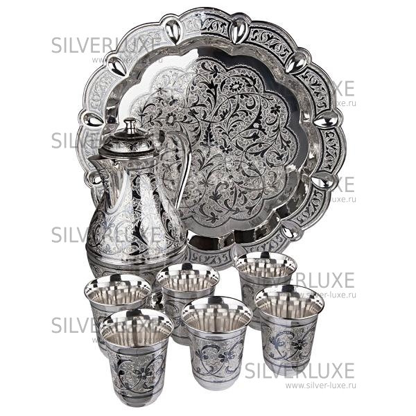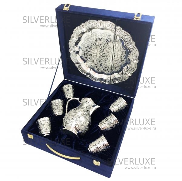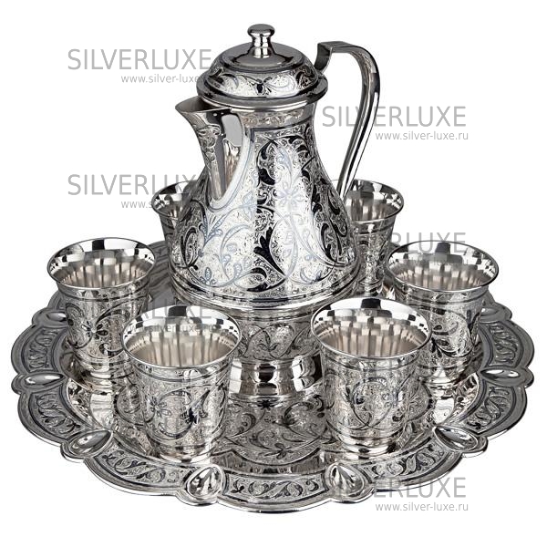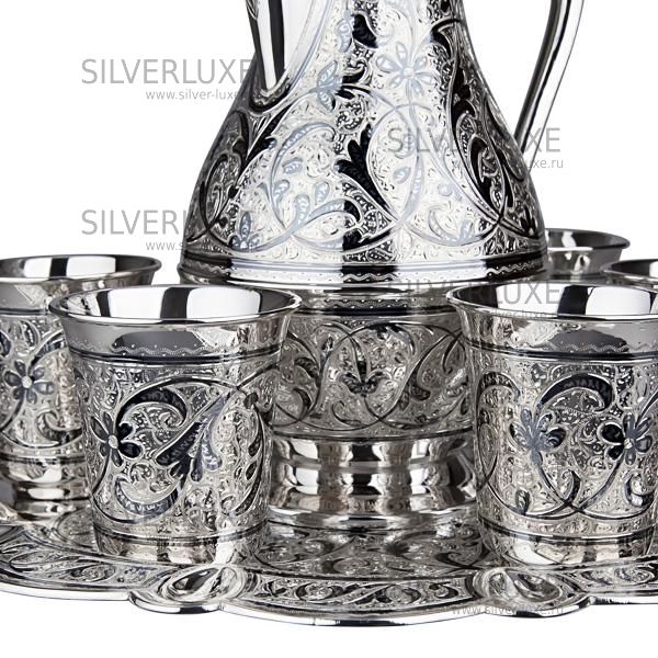 Серебро 875 пробы. Набор для сока и воды. В сервиз входят кувшин, поднос и 6 стаканов. Ручная работа от кубачинских ювелиров!