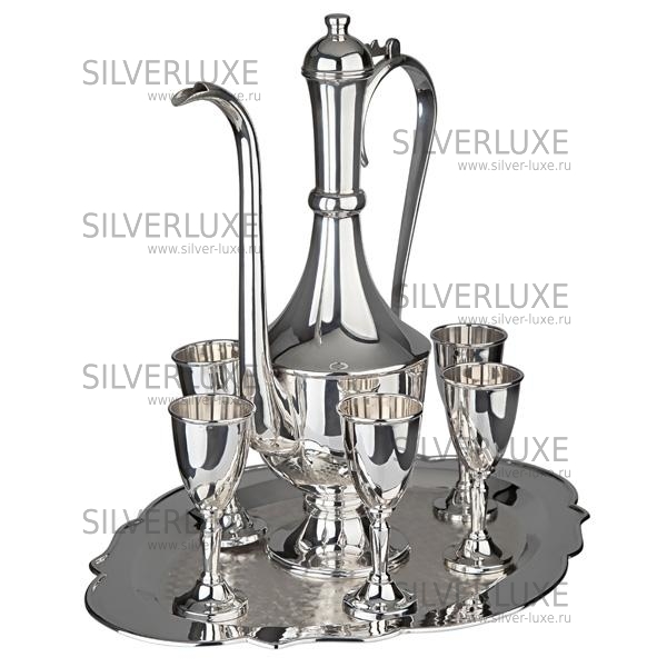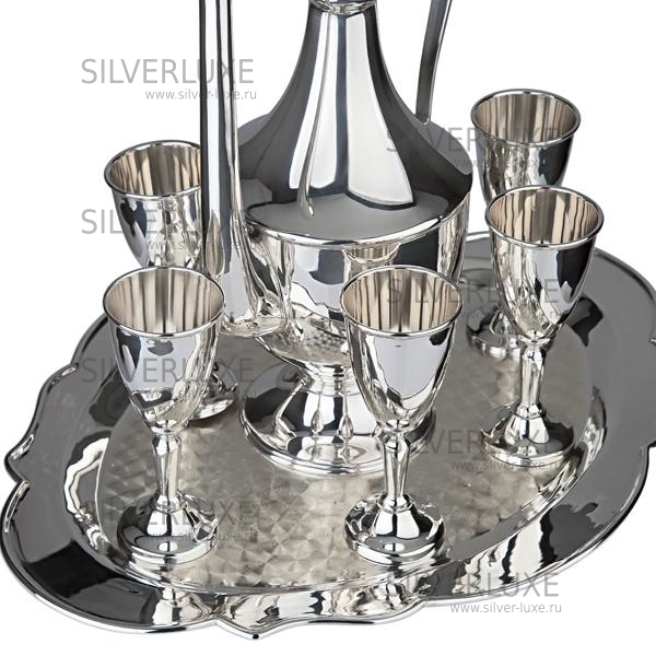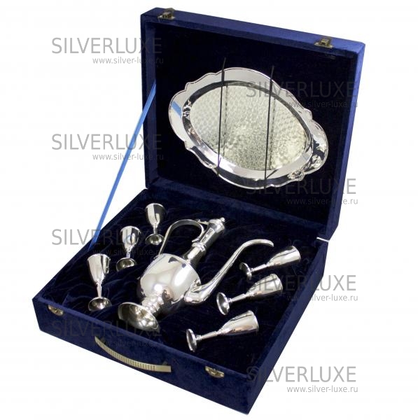 Серебро 875 пробы В сервиз входит-кувшин, 6 рюмок и поднос. Гарантия высшего качества от фирменного магазина! Возможно нанесение подарочной надписи или любого рисунка.