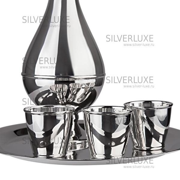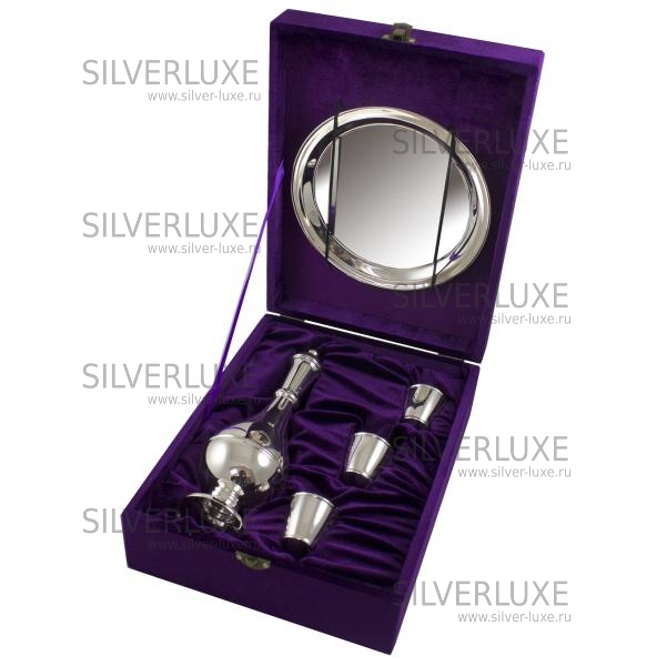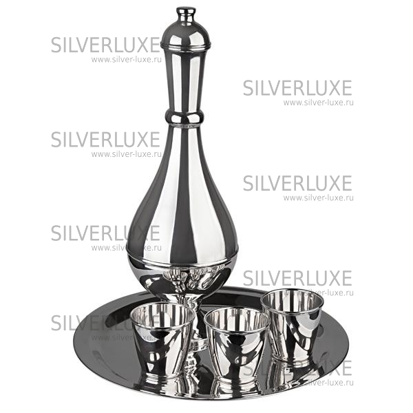 Серебро 875 пробы. В сервиз входят: поднос, графин, 3 стопки. Возможно нанесение подарочной надписи или любого рисунка.