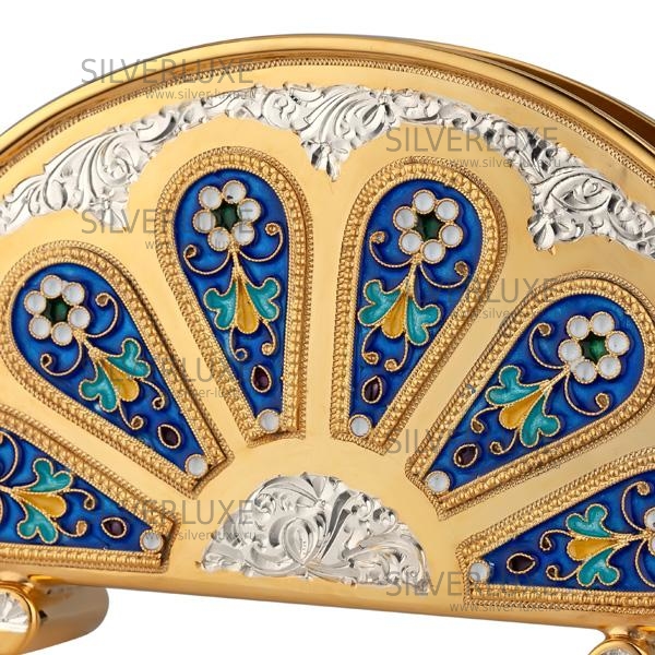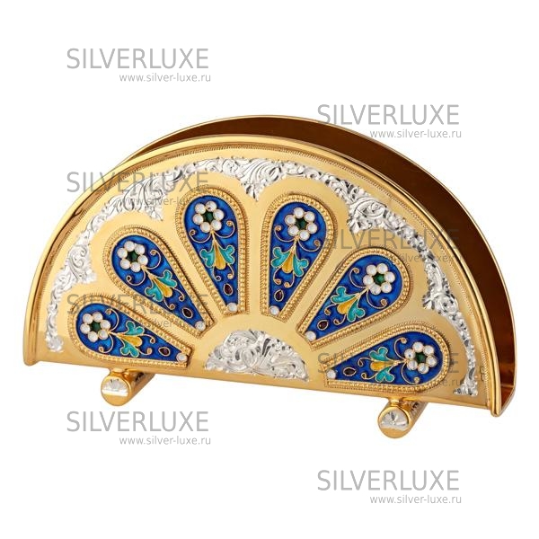 Серебро 875 пробы, с позолотой 999 пробы. Салфетница состоит из двух частей, соединяются у основания.