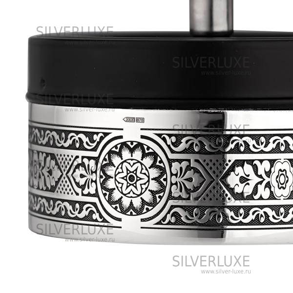 Корпус из серебра 875 пробы, механизм крышки нажимной, из стали. Крышка пепельницы имеет три углубления для сигарет и специальный поворотный механизм, при помощи которого пепел стряхивается в контейнер. Достаточно просто нажать на верх пепельницы и механизм сработает.Подарочная пепельница сувенир с нажимнымной очисткой позволит вам всегда иметь под рукой чистую и пустую пепельницу, а так же не дышать неприятным запахом от окурков и пепла. За счёт крутящегося механизма окурки и пепел бережно сбрасываются внутрь изделия, что избавляет помещение от мусора и неприятного табачного запаха.Легко чистится и моется. Плотное прилегание особой крышки гарантирует чистоту даже при опрокидывании пепельницы. Пепельница дымоуловитель будет оригинально смотреться в любом интерьере. Чтобы не портить здоровье некурящих людей, особенно детей и женщин, бездымная пепельница наилучший выход.