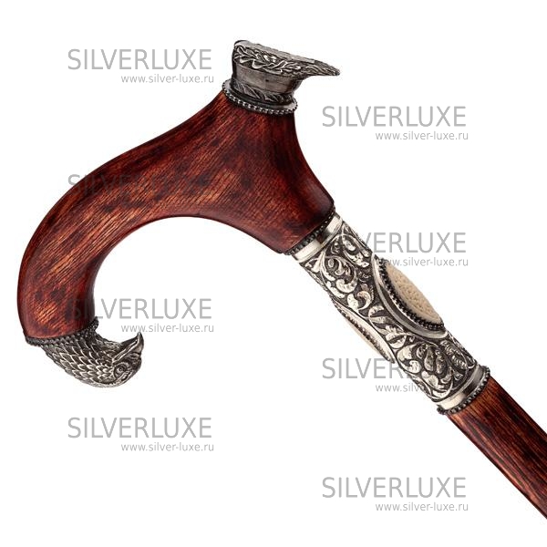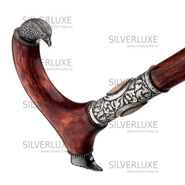 Трость выполнена из ясеня, покрыта лаком, рукоятка с головой орла. Вставки из серебра 875 пробы и слоновой кости. Гарантия высшего качества от фирменного магазина!
