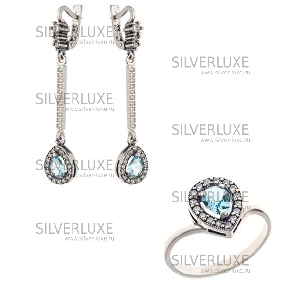 Комплект серебряный с голубым камнем артикул: 6973