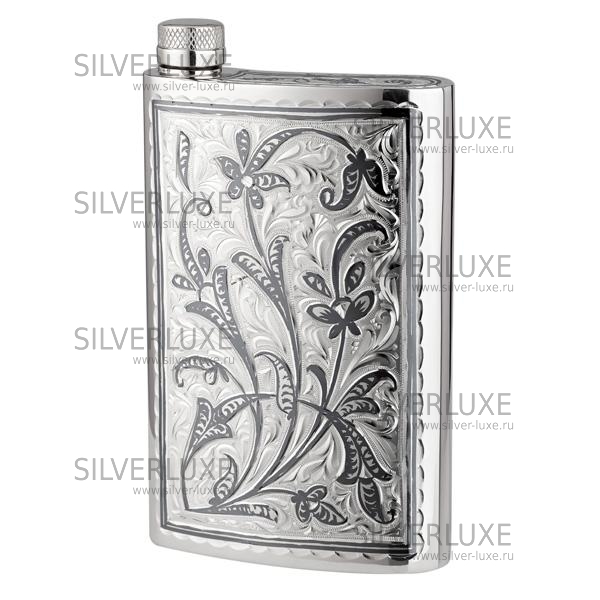 Серебро 875 пробы. Задняя сторона фляги гладкая, возможно нанесенние гравировки.