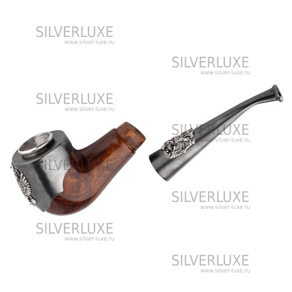 Серебро 875 пробы. Средний вес серебра 40 грамм. Вставка - корень ореха. Курительная трубка — приспособление для курения специально подготовленного и нарезанного табака. Курение трубки — один из первых способов употребления табака. Гарантия высшего качества от фирменного магазина!