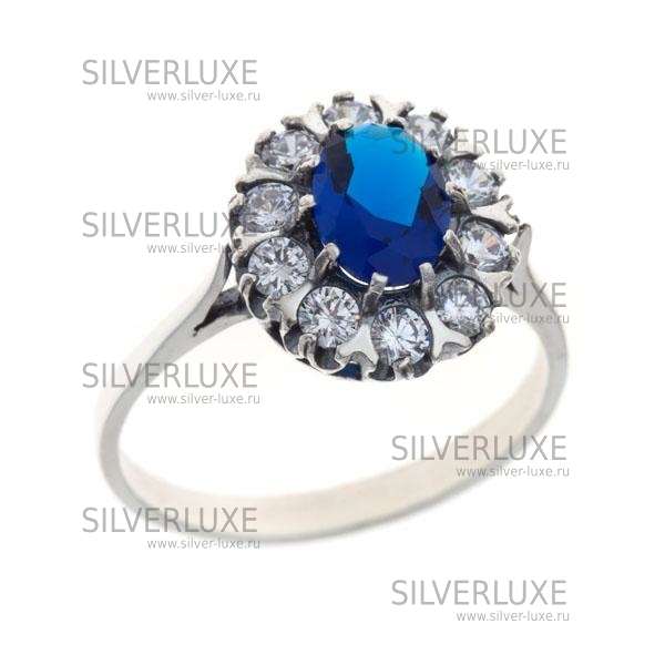 Кольцо серебряное с синим камнем артикул: 6831/1