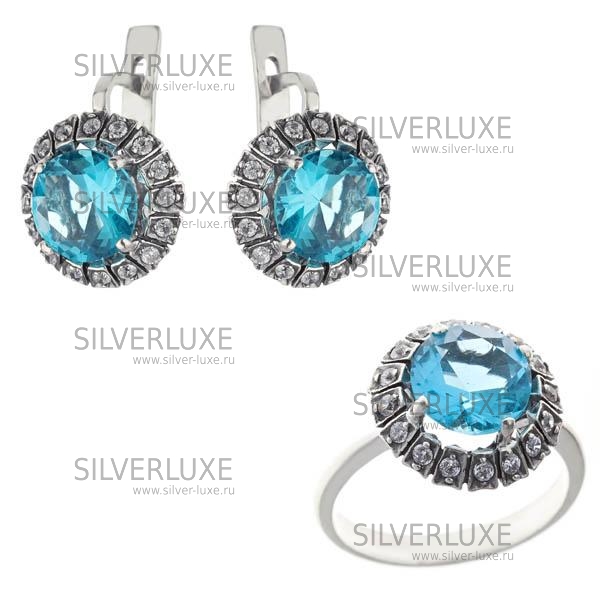 Серебро 925 пробы. Вставка - акввамарин и цирконий. Изделие в подарочной упаковке.