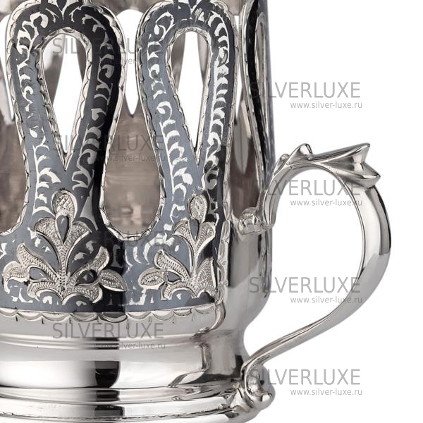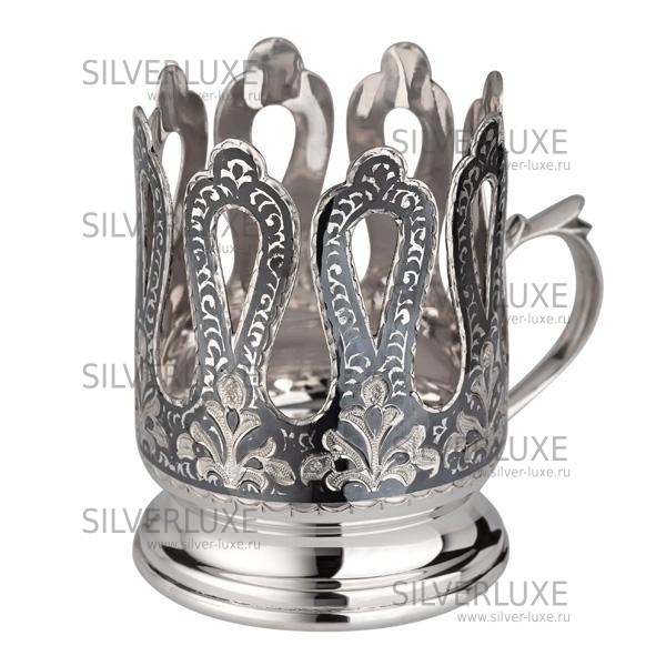 Серебро 875 пробы. Стакан в комплекте. Чайная церемония для восточных народов всегда являлась чем-то особенным. Ритуал до сих пор проводят с соблюдением старых национальных традиций. В Турции и Азербайджане день начинается с чашки чая, а пить напиток могут ещё несколько раз в течение дня, им завершают каждую трапезу. Конечно, главную роль в чаепитии играют стеклянные чашки — армуды, культурное наследие, оставшееся от османской империи. Особая форма способствует более длительному сохранению тепла, а прозрачность позволяет видеть наполненность стакана, поэтому даже при долгих беседах можно не беспокоиться о том, что напиток остынет.
