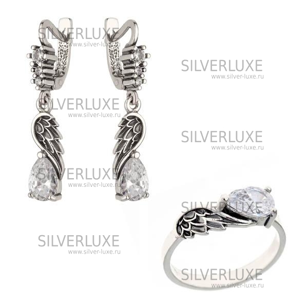 Комплект из серебра «Крылья» с белым камнем артикул: 8356/4