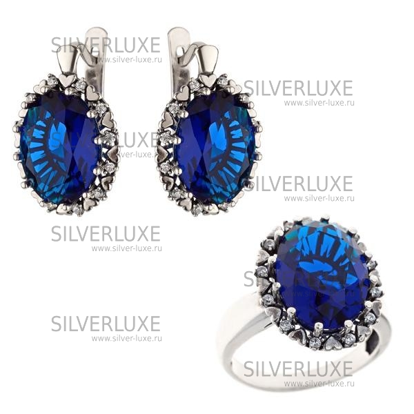 Комплект «Сердечки» с синим камнем артикул: 8283/3