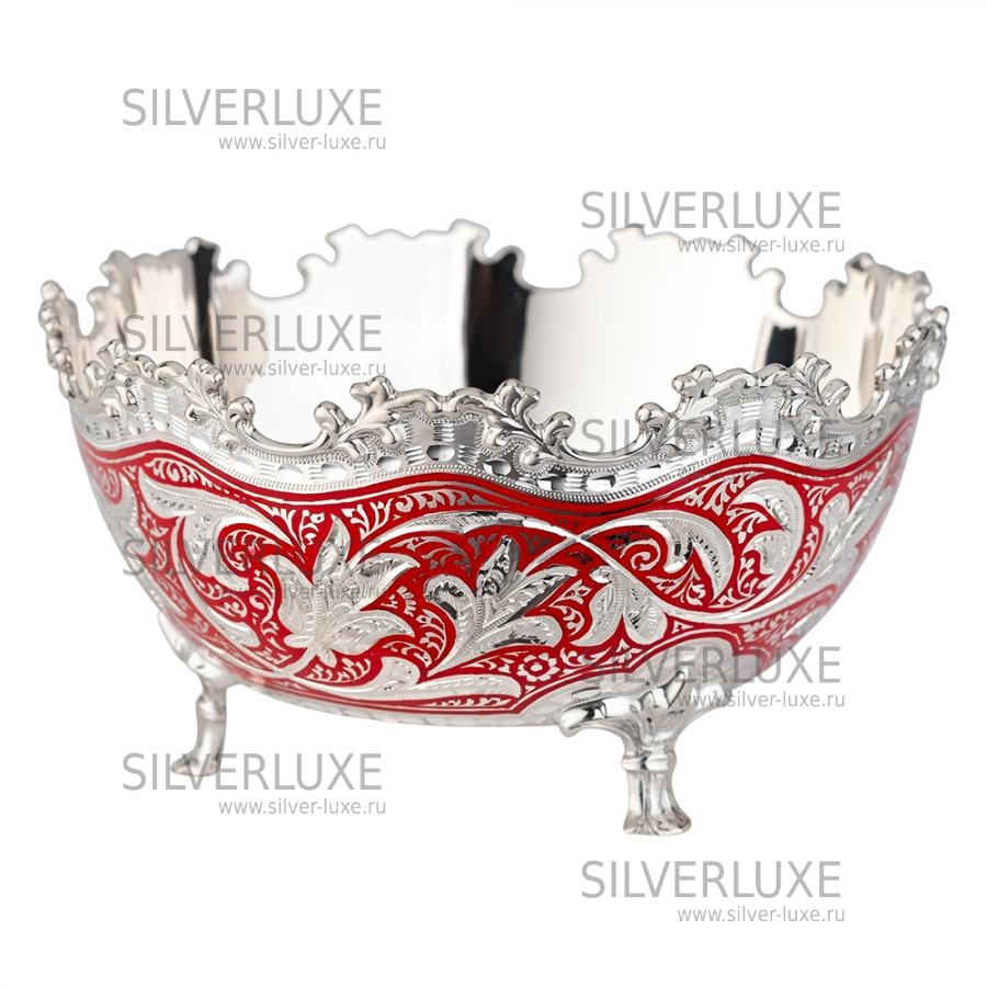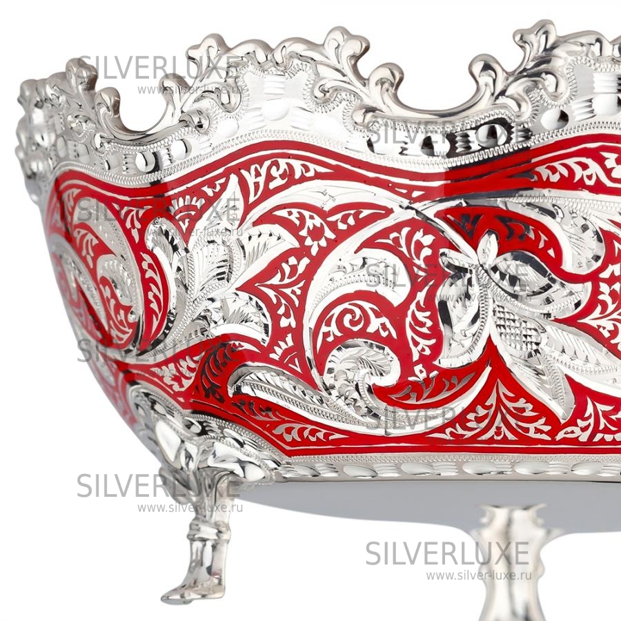 Конфетница серия «Жасмин» с красной холодной эмалью (Новинка) артикул: 2200/1