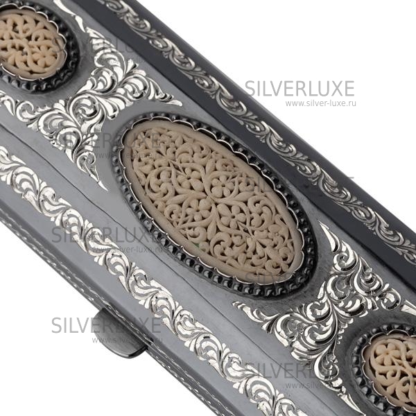 Серебро 875 пробы. Вставка-слоновая кость. Внутренняя часть покрыта флоком.
