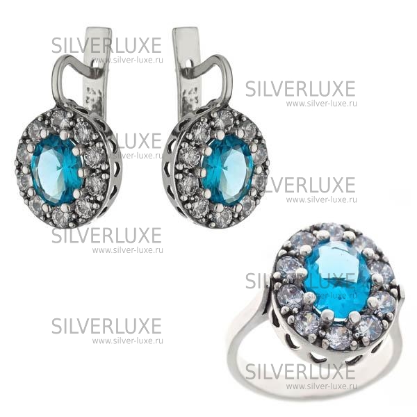 Комплект серебряный «Небеса» с голубыми камнями артикул: 8499
