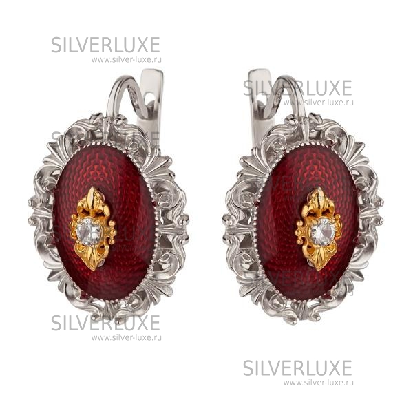 Позолоченные серьги с бордовой эмалью артикул: 6752/1