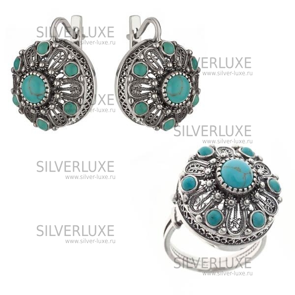 Комплект серебряный с бирюзой артикул: 8373/1