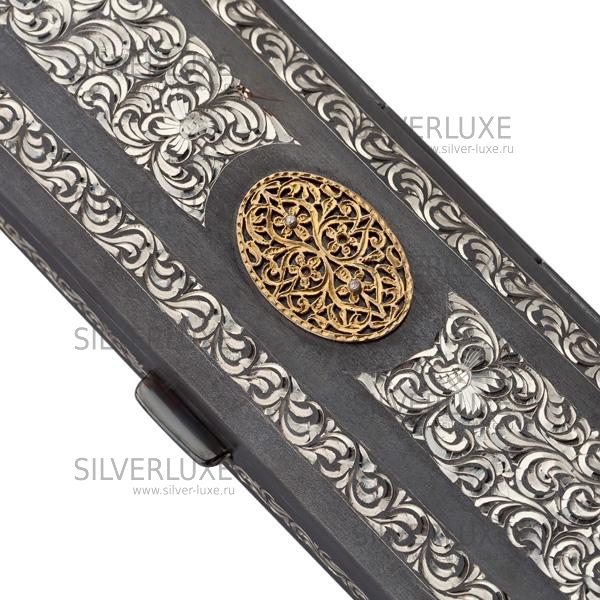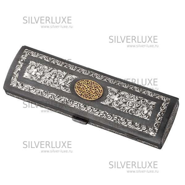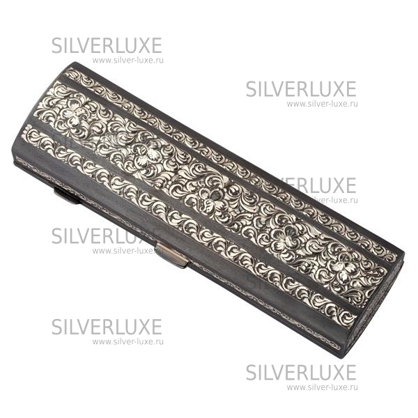 Серебро 875 пробы. Вставка-слоновая кость.Внутренняя часть выполнена в бархате.