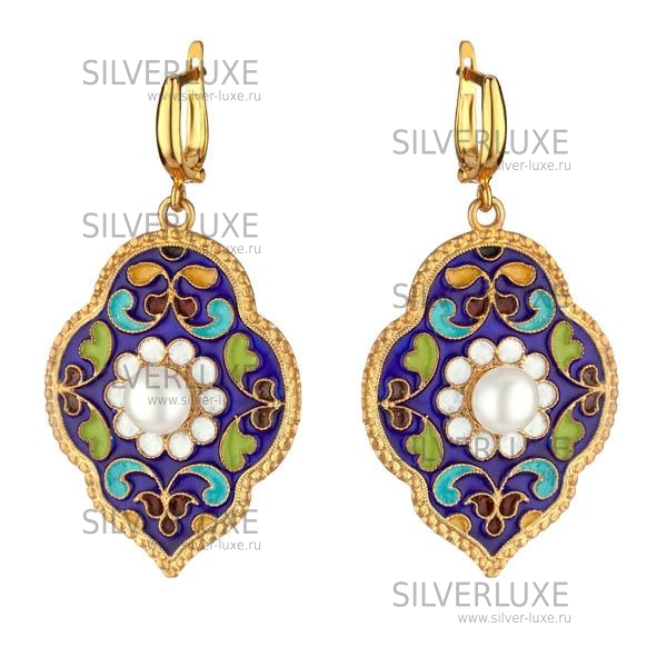 Серебро 875 пробы. Покрыты золотом 999 пробы. Серьги с цветной горячей эмалью, В фирменной подарочной упаковке.