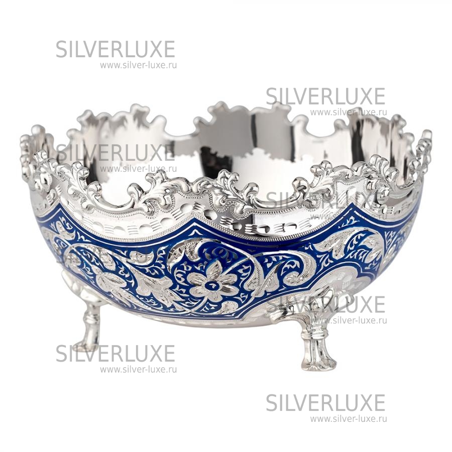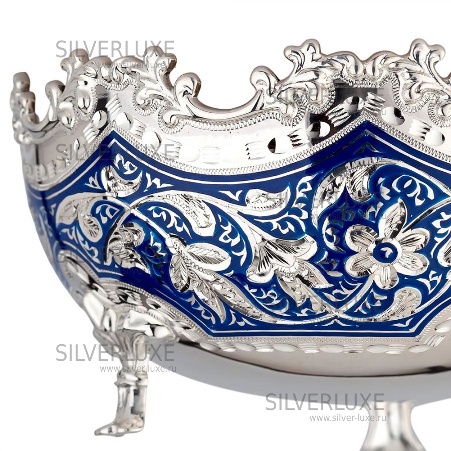 Конфетница «Жасмин» мини, с синей холодной эмалью (Новинка) артикул: 2200/3