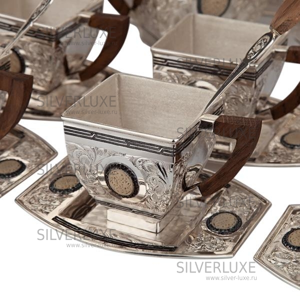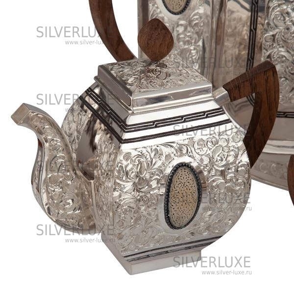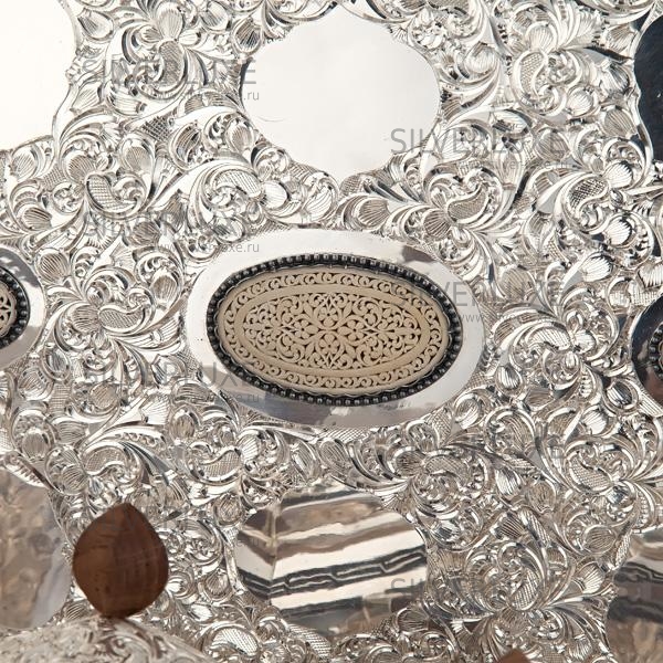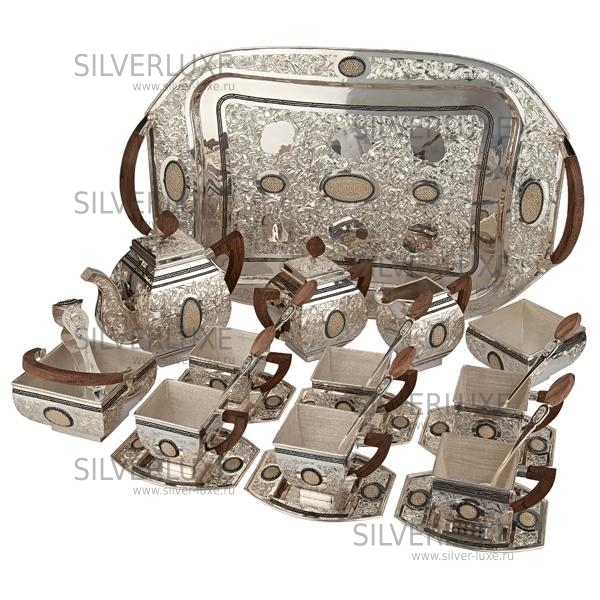 Серебро 875 пробы. В сервиз входят: чайник, сахарница, поднос, подстаканники 6 шт. Роскошный набор от кубачинских ювелиров! Гарантия высшего качества от фирменного магазина!