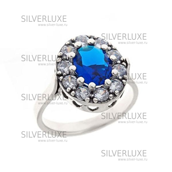 Кольцо серебряное с синим камнем артикул: 2262