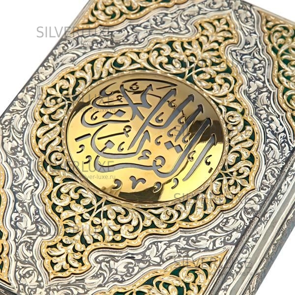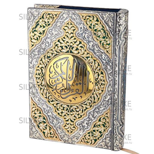 Серебро 875 пробы, с позолотой 999 пробы. Коран — священная книга мусульман. Слово «Коран» происходит от арабского «чтение вслух», «назидание». Коран представляет собой сборник изречений пророка Мухаммеда, сделанных им от имени Аллаха. Такой подарок станет достойным выражением уважения.