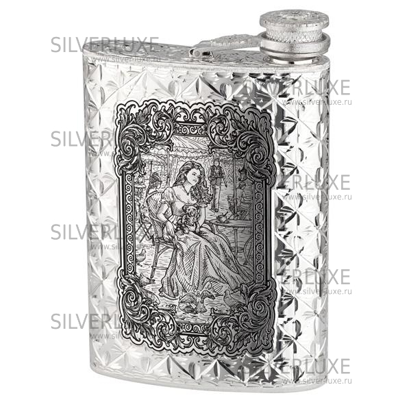 Фляга серебряная «Девушка с собачкой» на 270 мл артикул: 4670