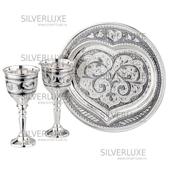 Серебро 875 пробы. Набор - кувшин и два стакана. Гарантия высшего качества от фирменного магазина!