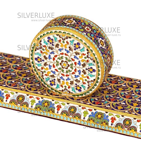 Серебро 960 пробы. Покрыт золотом 999 пробы, с горячей эмалью. Выполнен на мраморной подставке. Прекрасный подарок руководителю или просто деловому человеку. Добавит роскошь в любой кабинет!
