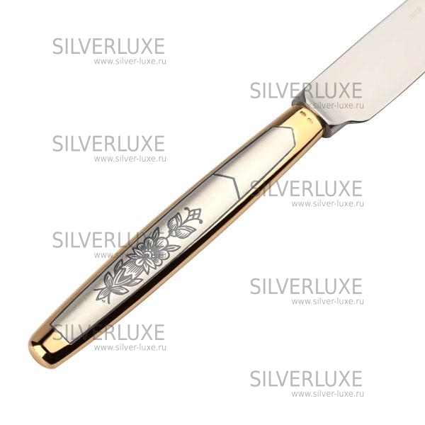 Серебро 925 пробы, с позолотой. Приборы изготовлены мастерами великоустюгского завода «Северная чернь». Сплавы, содержащиеся в пробе, придают изделию прочность и защиту от механических повреждений. Столовые приборы на протяжении многих десятилетий сохраняют привлекательный внешний вид и не окисляются при контакте с пищей.