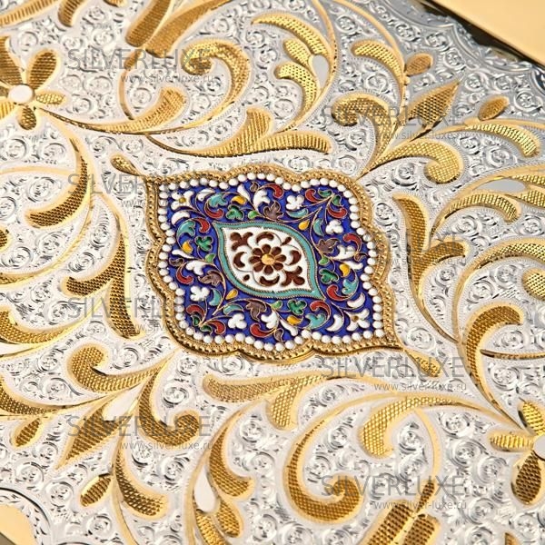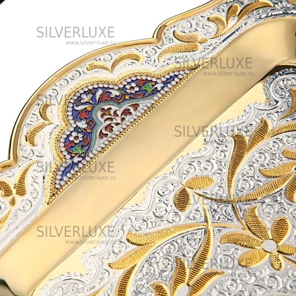 Серебро 875 пробы, покрыт золотом 999 пробы.