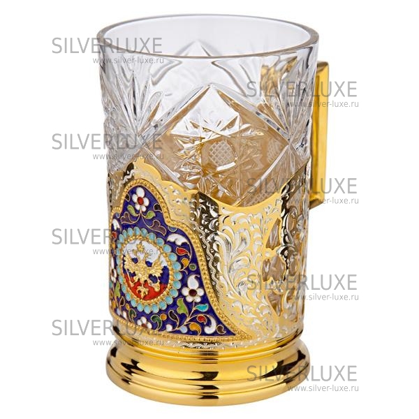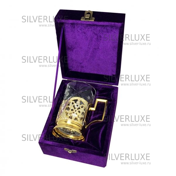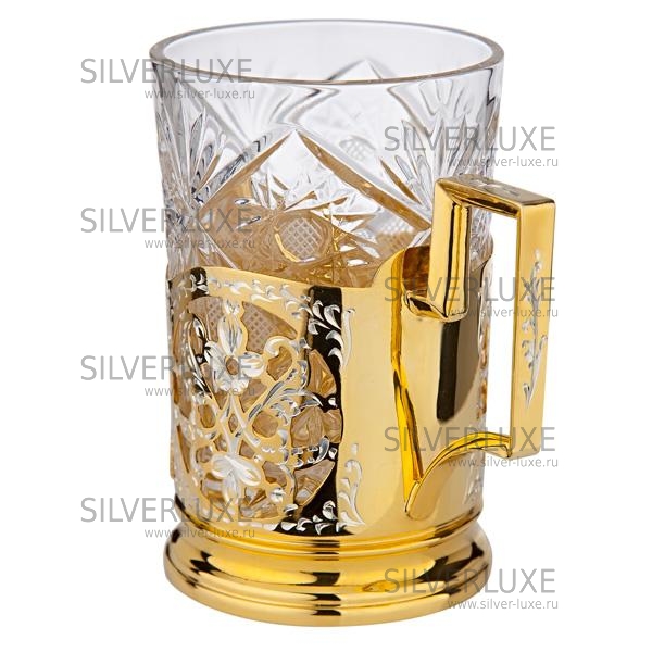 Серебро 875 пробы. Покрыт золотом 999 пробы. Стакан в комплекте.