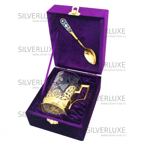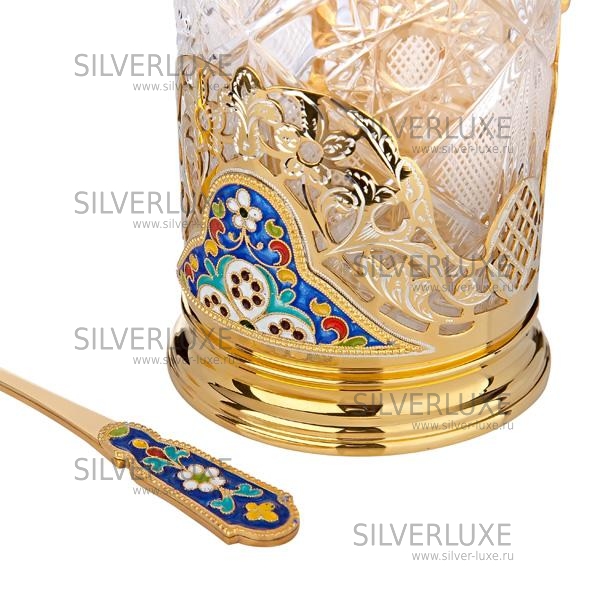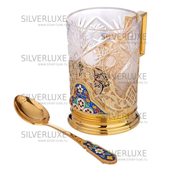 Серебро 875 пробы. Покрыты золотом 999 пробы. Стакан в комплекте. Подобрать подстаканник и ложку вы можете так же самостоятельно.