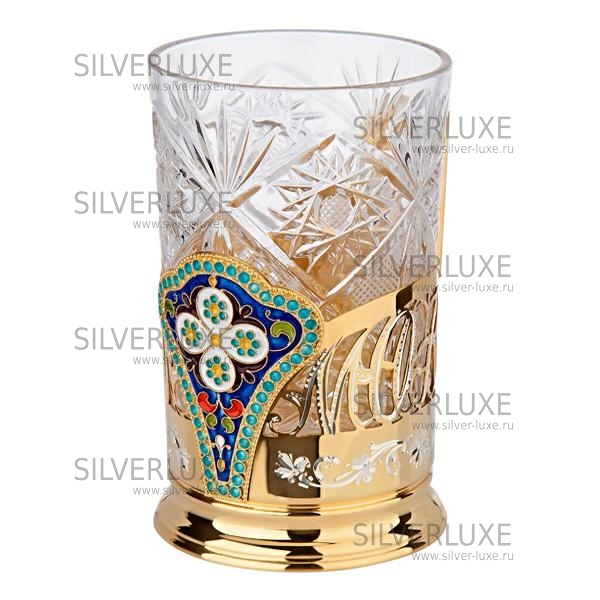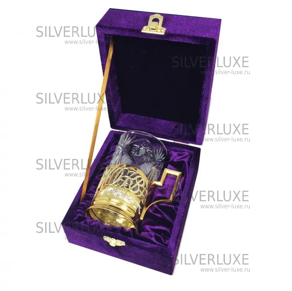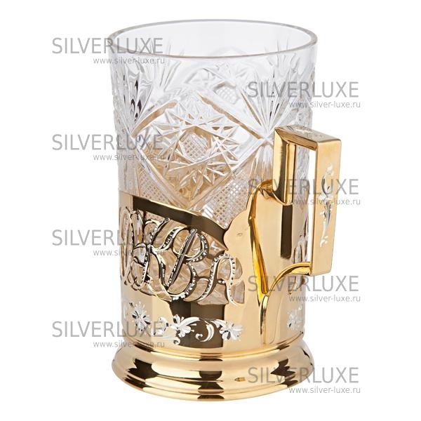 Серебро 875 пробы. Покрыт золотом 999 пробы. Стакан в комплекте.