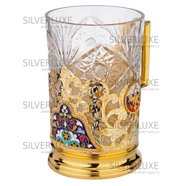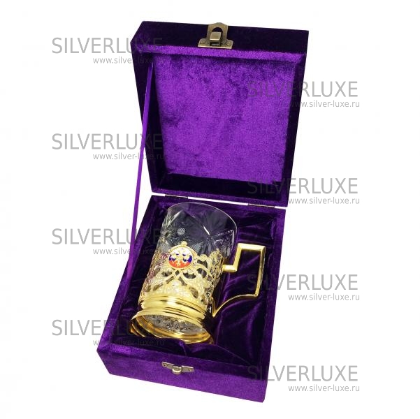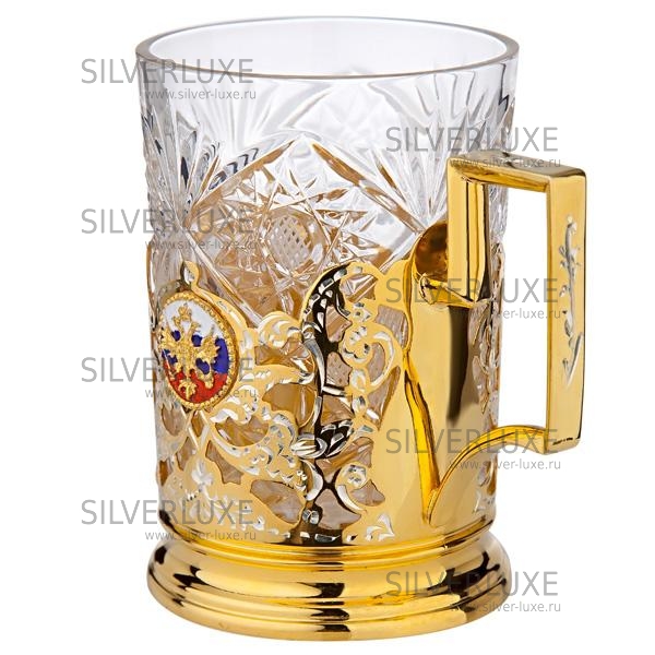 Серебро 875 пробы. Покрыт золотом 999 пробы. Стакан в комплекте.
