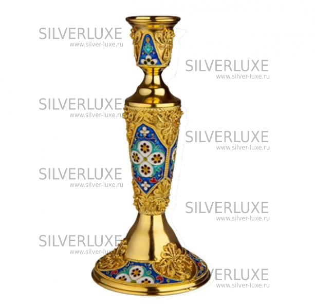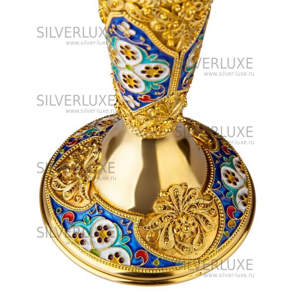 Серебро 875 пробы. Покрыт золотом 999 пробы. Подсвечник с горячей эмалью и филигранными вставками, полностью ручная работа!