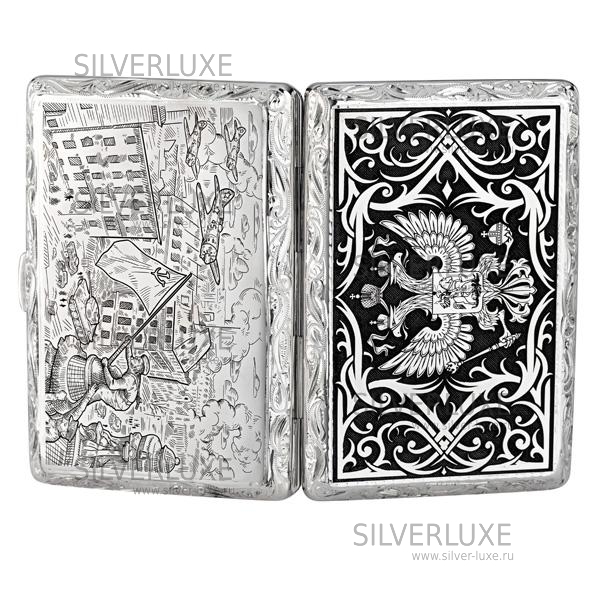 Серебро 875 пробы. Внутренняя часть в бархате. Портсигар узкий, рассчитан на 7 сигарет.