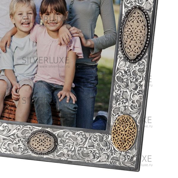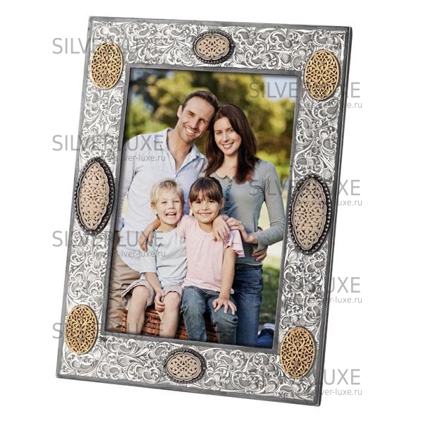 Корпус фоторамки выполнен из серебра 875 пробы, с позолотой 999 пробы, с удобной подставкой, которая вращается и может принимать любое положение. Формат фотографии: 9,5 / 14,5 см. Фоторамка - это один из лучших подарков и хорошее дополнение в любом интерьере!