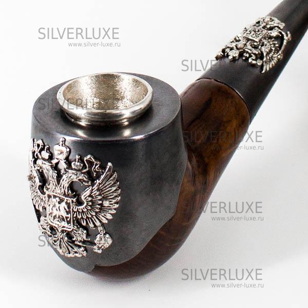 Серебро 875 пробы. Средний вес серебра 40 грамм. Вставка - корень ореха. Курительная трубка — приспособление для курения специально подготовленного и нарезанного табака. Курение трубки — один из первых способов употребления табака. Гарантия высшего качества от фирменного магазина!