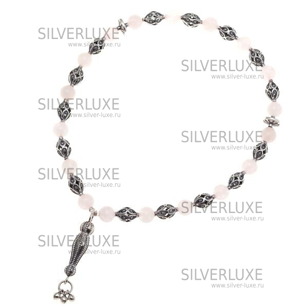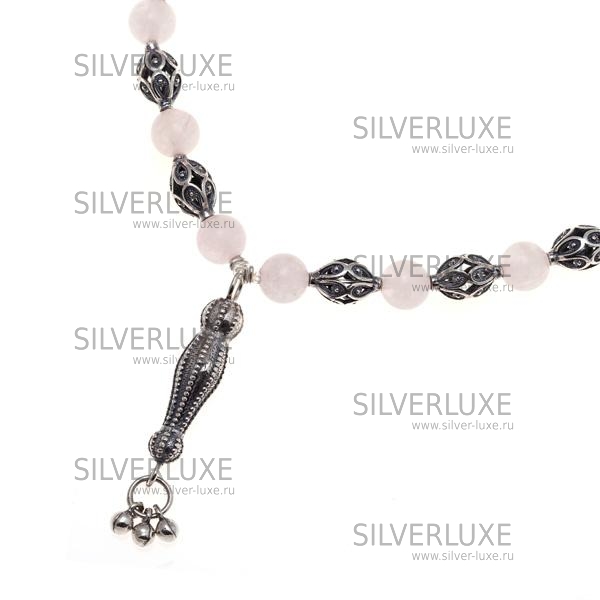 Чётки серебряные с розовым кварцем артикул: 4519/6